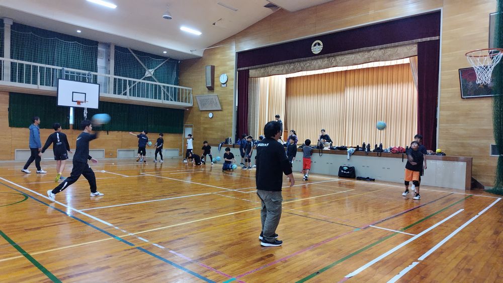 体育館での合宿では、練習と遊びのメリハリをつけることで、