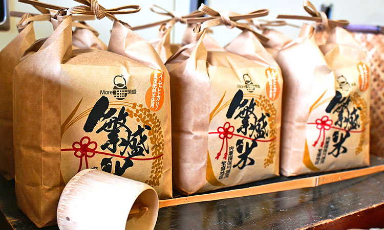 レストランで提供しているオリジナル日本酒や自家製のブランド米「繁盛米」は、購入も可能です。